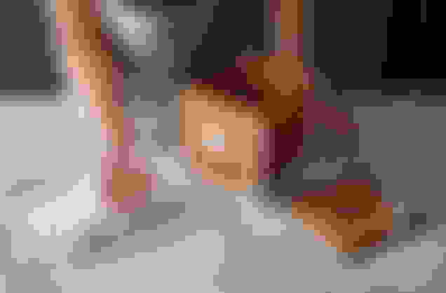 Az összeállításhoz nyomjuk a mázat a munkafelületre fektetett kis négyzet két szélére. Kezdjük el a másik oldalakat erre a darabra ragasztani. Használjunk formákat a dobozok oldalainak megtámasztására, amíg a máz megköt, és nyomjunk extra mázat a belső illesztések mentén, hogy több rejtett tartást adjunk nekik a mázzal.