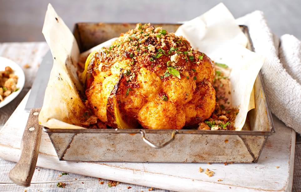 A brokkolihoz hasonlóan a karfiolt is apró, ehető virágok sűrű hálózata alkotja, amelyek egy vastag központi szárból nőnek ki. A fehér karfiol a leggyakoribb fajta – a krémes, kerek fejnek egyenletes színűnek kell lennie, és feszes zöld levelek veszik körül. A sütéssel előjön az édesebb íze – süssük egészben, és kenjük meg kormával vagy paprikával egy lenyűgöző vegetáriánus ételért.