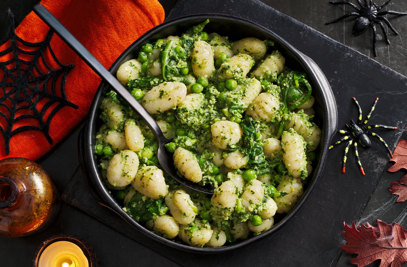 Kipróbálnál egy szörnyen finom vacsorát, amit a gyerekek is imádni fognak? Ez a „mocsári gnocchi” pont neked való! Élénkzöld, zöldséges szószával úgy néz ki, mintha egy igazi szörny konyhájából került volna elő – tökéletes választás Halloweenre.