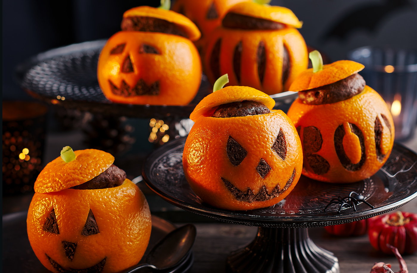 Rukkolj elő valami varázslatossal ezzel a rémisztően gyümölcsös Halloweeni ötlettel! Vájd ki egy narancs belsejét, majd töltsd meg csokoládés tortakeverékkel. Tökéletes októberi nasi!