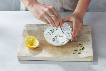 Készíts gyors mártogatóst A fűszeres szárnyakhoz készíts hűsítő mártogatóst: keverj össze 150 g görög joghurtot, ½ citrom levét, 2 evőkanál apróra vágott metélőhagymát és 1 nagy gerezd zúzott fokhagymát, majd ízesítsd.