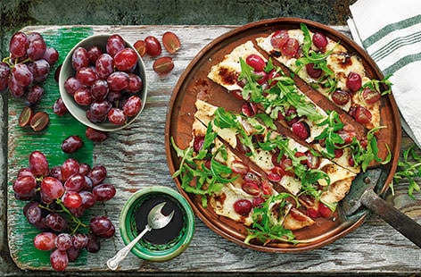 Az édes piros szőlőt a Földközi-tenger termékeny régióiban és azon túl is termesztik, és nem csak nassolnivalóként eheted. Próbáld ki a szőlőt nyársra fűzni, majd olvasztott étcsokoládéba mártogatni egy egyszerű desszerthez. A lédús szőlő kiegészíti a sós ízeket – remekül illik a krémes brie sajthoz az egyszerű lepénykenyereken, vagy használjuk egy illatos piros szőlős és rozmaringos focacciához.