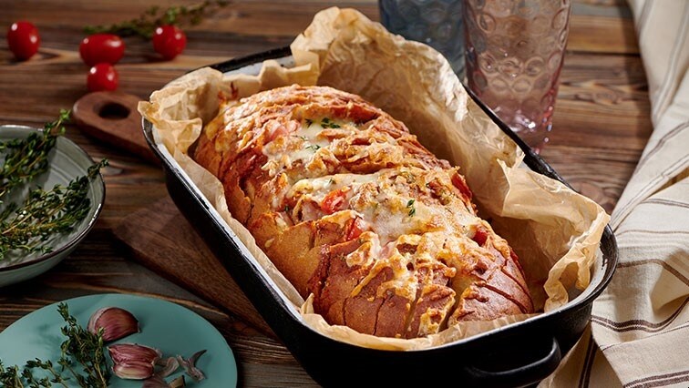 Ha az előbbi fogásokat sikeresen elkészítette, a vacsora már csak gyerekjáték lesz. A pizzás kenyeret még melegen tálalja, ilyenkor a sajt szép nyúlós benne.