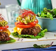 "Naked burger" marhahússal, guacamoléval, cheddar sajtos krumplival, szalonnával és snidlinggel