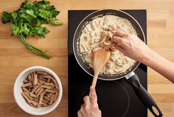 Öntsük le a vizet a gombáról, süssük 5 percig levesalappal.