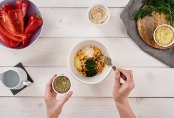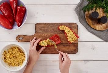 Töltsük meg a kápia paprikákat ezzel a keverékkel.
