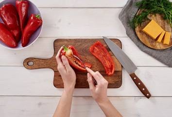 Melegítsük elő a sütőt 200 fokra. Hosszában vágjuk ketté a kápia paprikák és távolítsuk el a magházat.