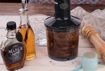 Keverjük el az összes hozzávalót egy konyhai robotgéppel vagy turmixgéppel, de csak három kanál szirupot használjunk.