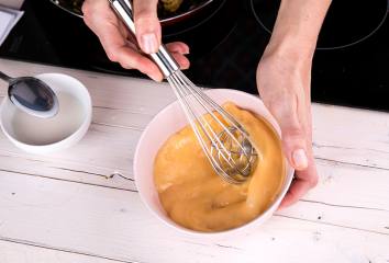 Kavarjuk össze egy másik tálkában a tojást, a növényi tejet illetve egy kis élesztőt.