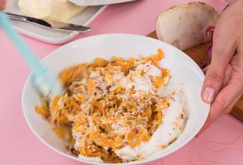 Hagyjuk kihűlni, majd keverjük hozzá a mustárt és a joghurtot.