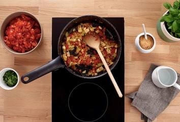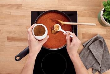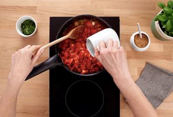 Adjunk hozzá paradicsomot és hideg vizet, majd forraljuk fel. Utána vegyük lejjebb a hőmérsékletet.
