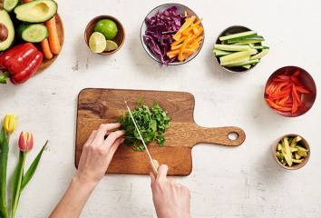 Szeleteljük vékonyra a zöldségeket, vágjuk apróra a koriandert és a salátalevelek felét.